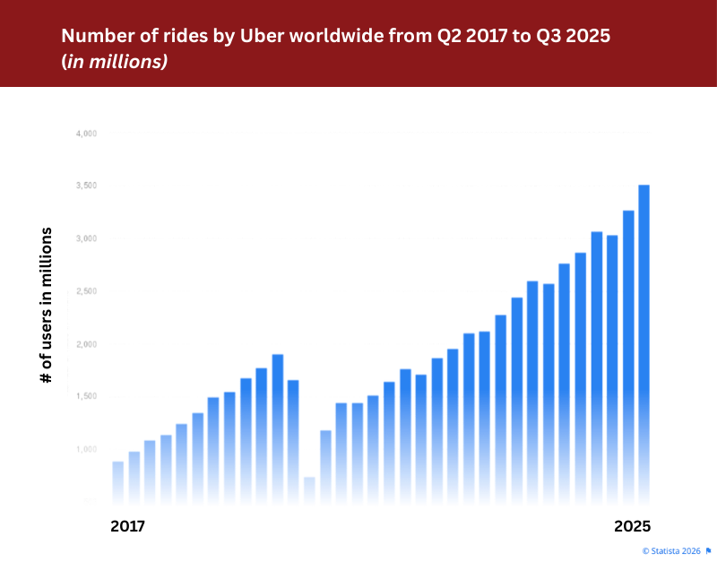 In the third quarter of 2025, Uber’s ridership worldwide totaled 3.5 billion trips. This compares to around 2.9 billion trips in the third quarter of 2024, representing an increase of 22.5 percent year-on-year.